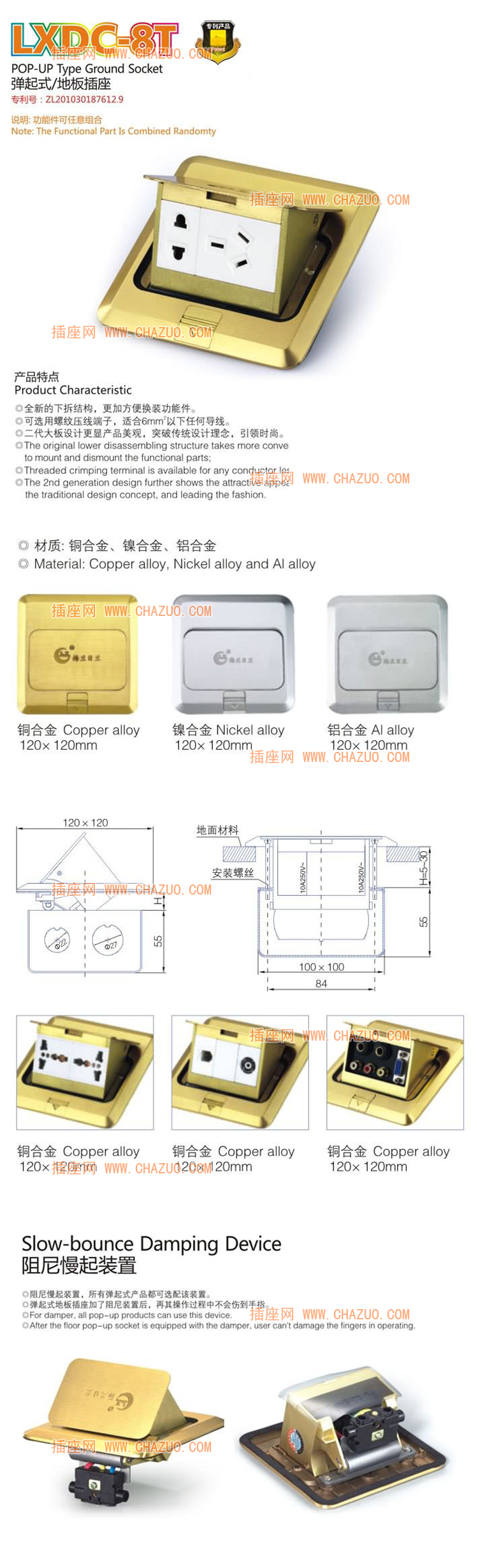 LXDC-8T 弹起式地面插座特点: u59{8{5joE 插座网 http://www.chazuo.com.cn/