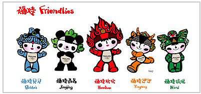 20点15分,在社会各界嘉宾和众多体育明星的簇拥下,北京奥组委和国际奥委会官员一起向全世界揭晓了北京2008年奥运会吉祥物。最终入选的是:奥林匹克圣火形象的福娃欢欢;大熊猫形象的福娃晶晶、鱼形象的福娃贝贝、藏羚羊形象的福娃迎迎和燕子造型的福娃妮妮五个拟人化福娃。五种造型名字合在一起就意味着“北京欢迎你!”