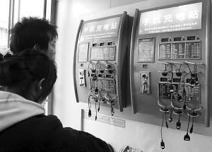最近一段时间,本报新闻热线连续接到读者反映称,一些手机充电站被人恶意破坏,或是充电插头儿被剪断,或是充电电线被拽断。昨天上午,记者来到河西区一家大型超市,超市入口处便有一个手机充电站,机器上大约有二十几个充电插头儿,可以为摩托罗拉、诺基亚、三星、夏新等七八个品牌、二十多个型号的手机充电。