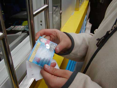 千龙网北京4月1日讯 今天北京市710个网点全面开始发售公交一卡通。早上6点半,记者来到四惠公交车站一卡通发售点,等待发售月票卡的乘客已经开始排队。6点58分,该发售点售出第一张公交IC卡。