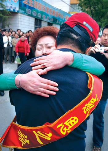 昨天上午9时55分,张晓东刚到洛阳市第一人民医院,在此翘首等待了很长时间的马素云远远就认出了他,并眼含热泪迎了上去。张晓东来不及把车子放好,两人便紧紧地拥抱在一起。