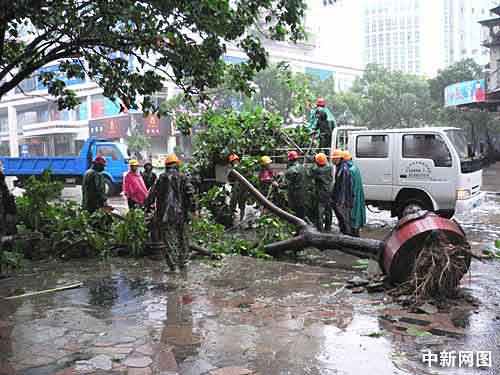今年第一号台风“珍珠”袭击汕头点击查看汕头及更多城市天气预报。图为被台风吹倒的大树。信息来源:插座网 http://www.chazuo.com.cn/