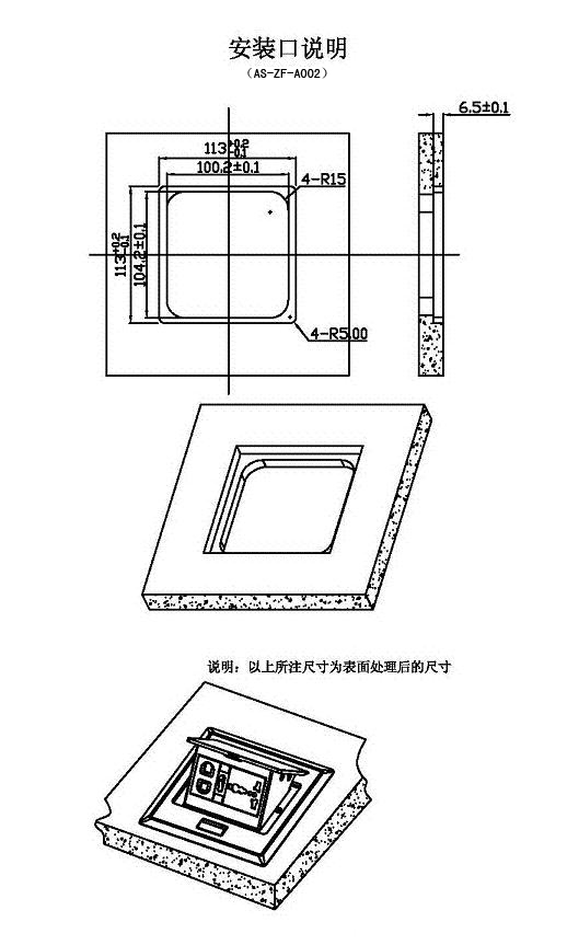 3、 根据客户提供的尺寸选择适合的开孔尺寸产品,原则上实物开孔,开孔一般建议多开1-2mm.